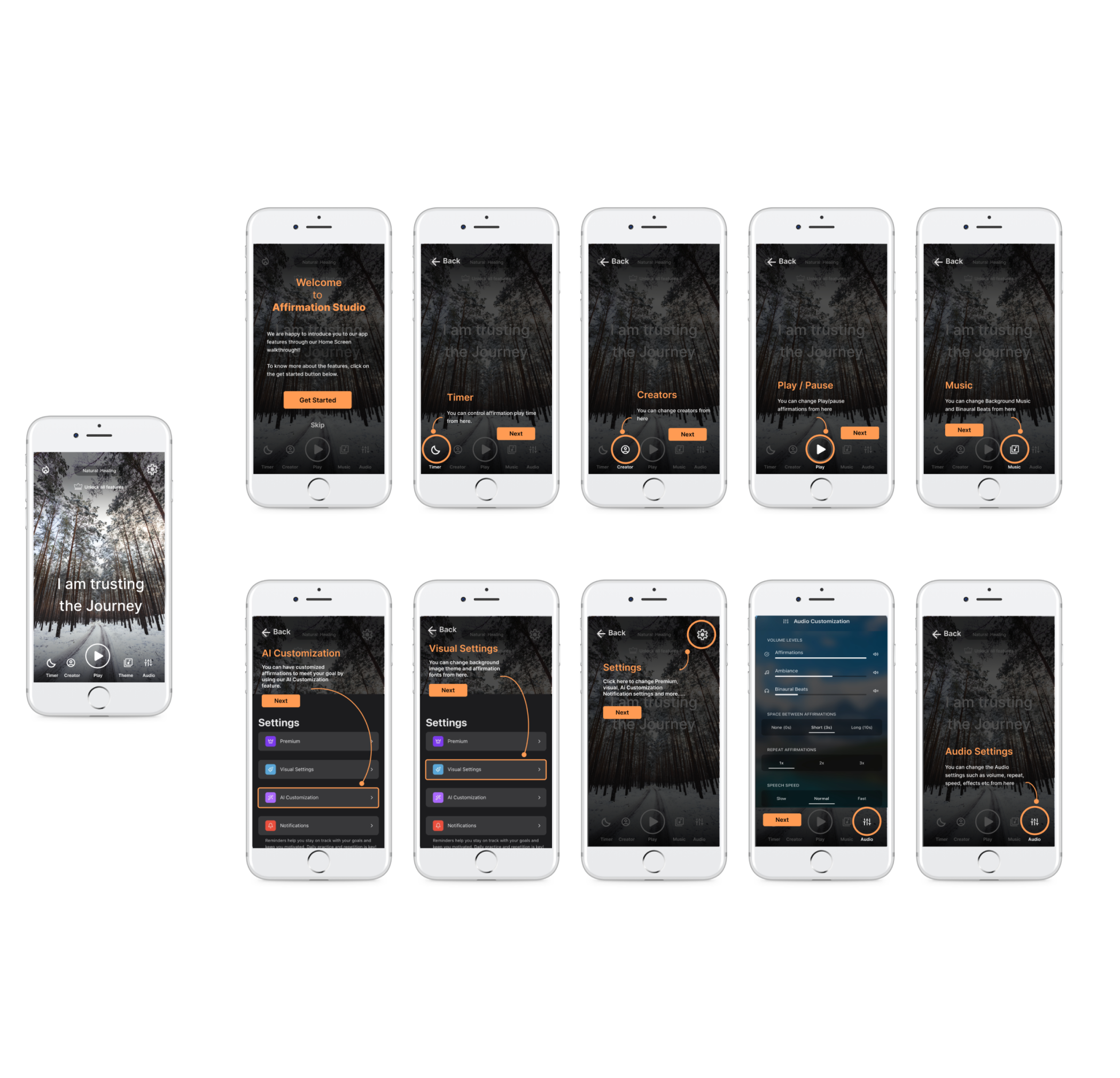 Created a detailed walkthrough for first-time users once they hit the homepage. Helping users understand where to find features and how to use them.