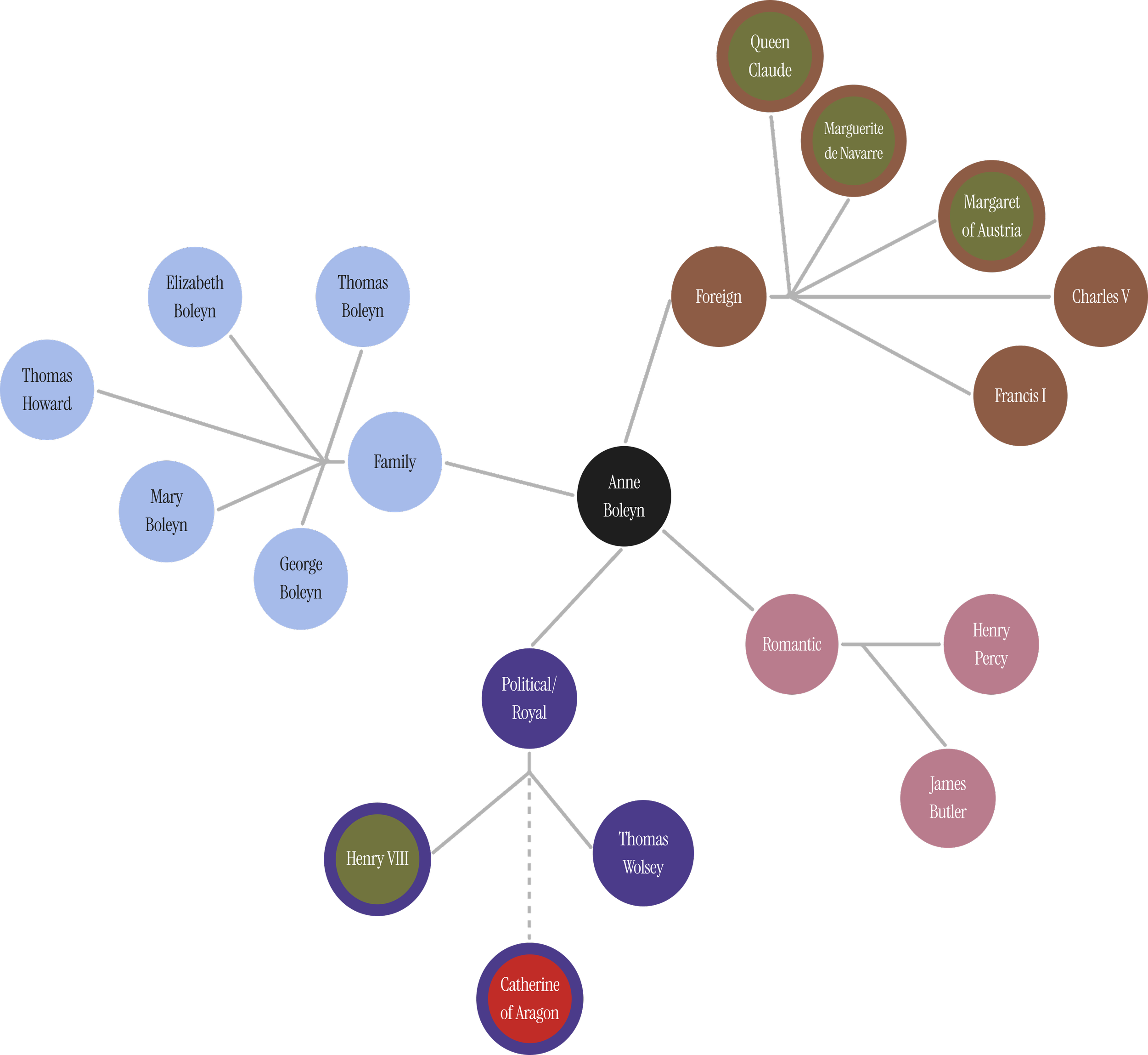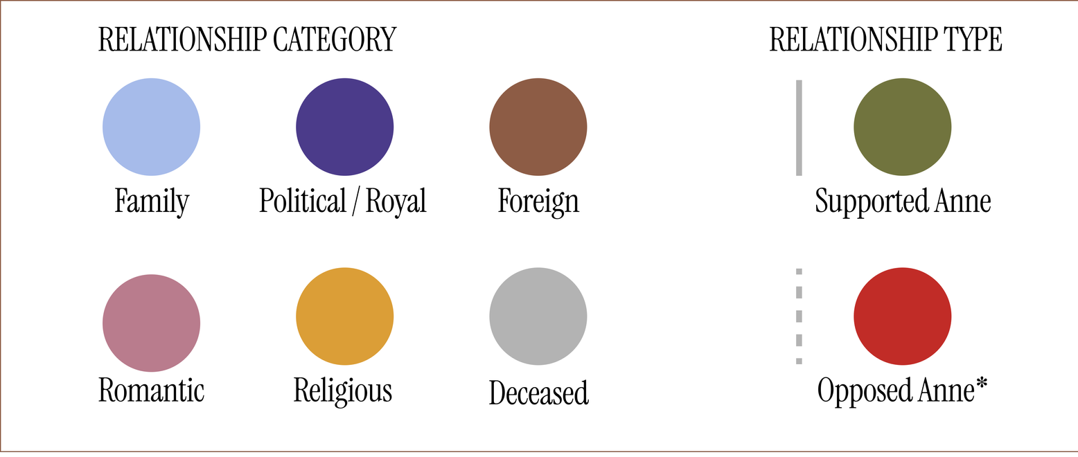 *Opposition does not necessarily reflect a connection’s personal feelings towards Anne, but instead represents how certain individuals were compelled to take this side either for their own political gain, safety, religious views, or as a matter of circumstance.